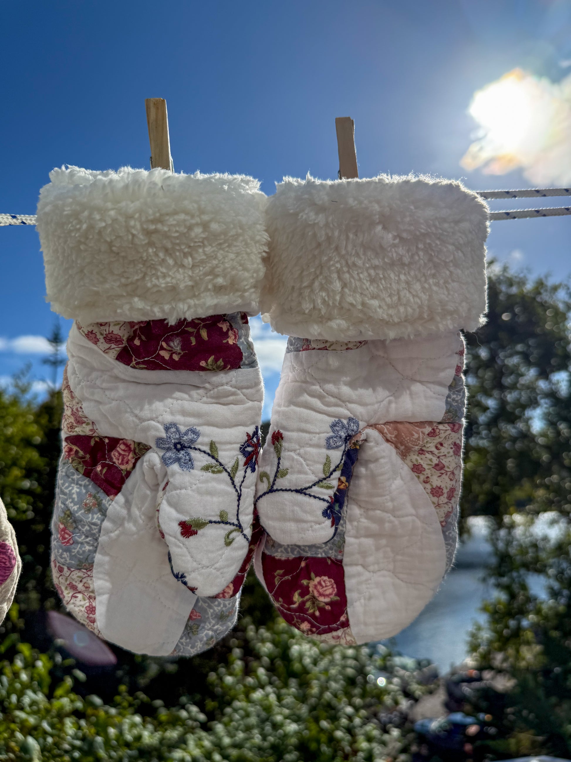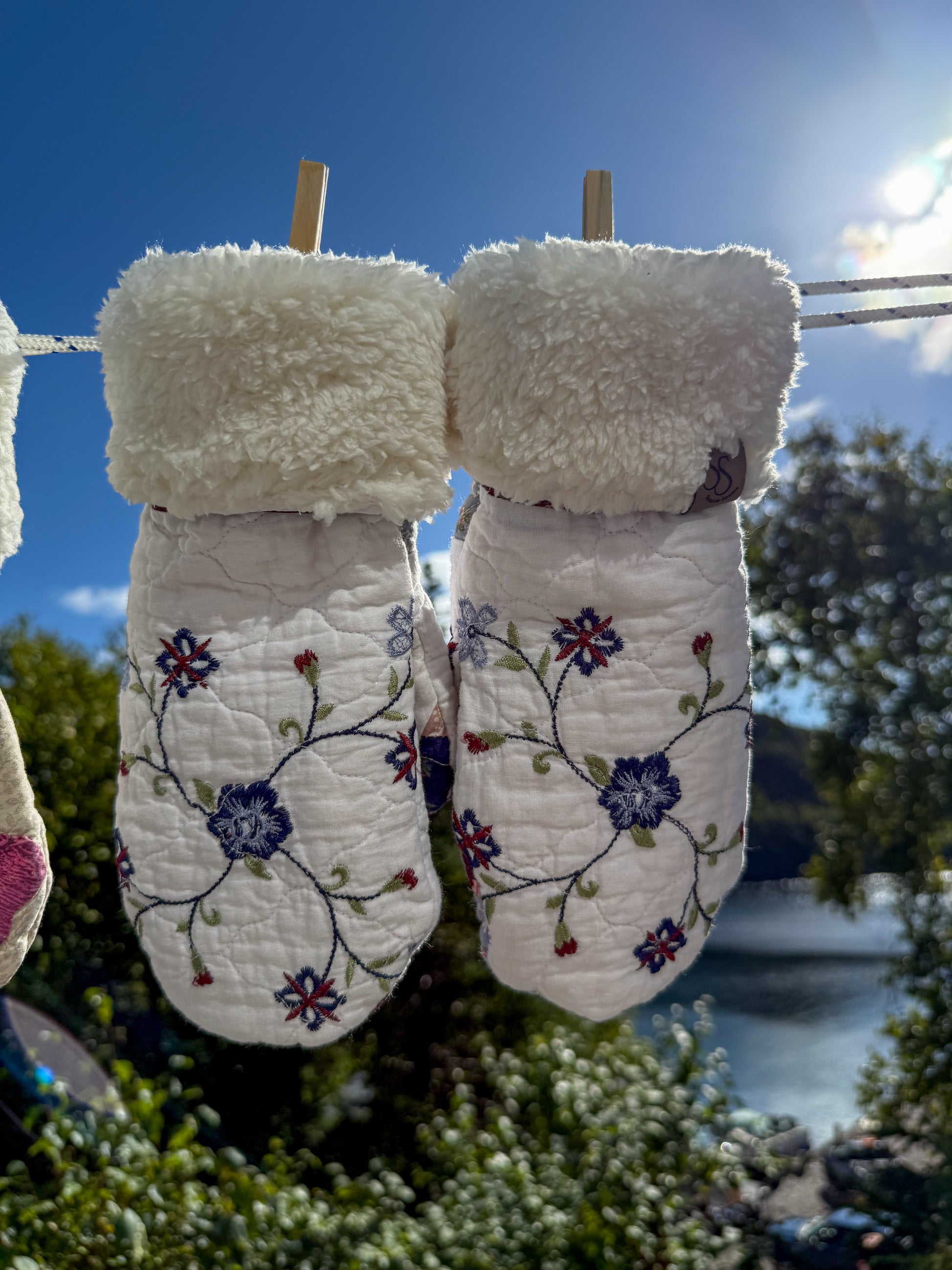 Embrace the chill in style with our Quilted Mittens, thoughtfully crafted from upcycled quilt coat remnants and fully lined with ultra-plush sherpa for unmatched warmth and comfort. These mittens are a testament to our commitment to sustainability, ensuring that no fabric goes to waste.