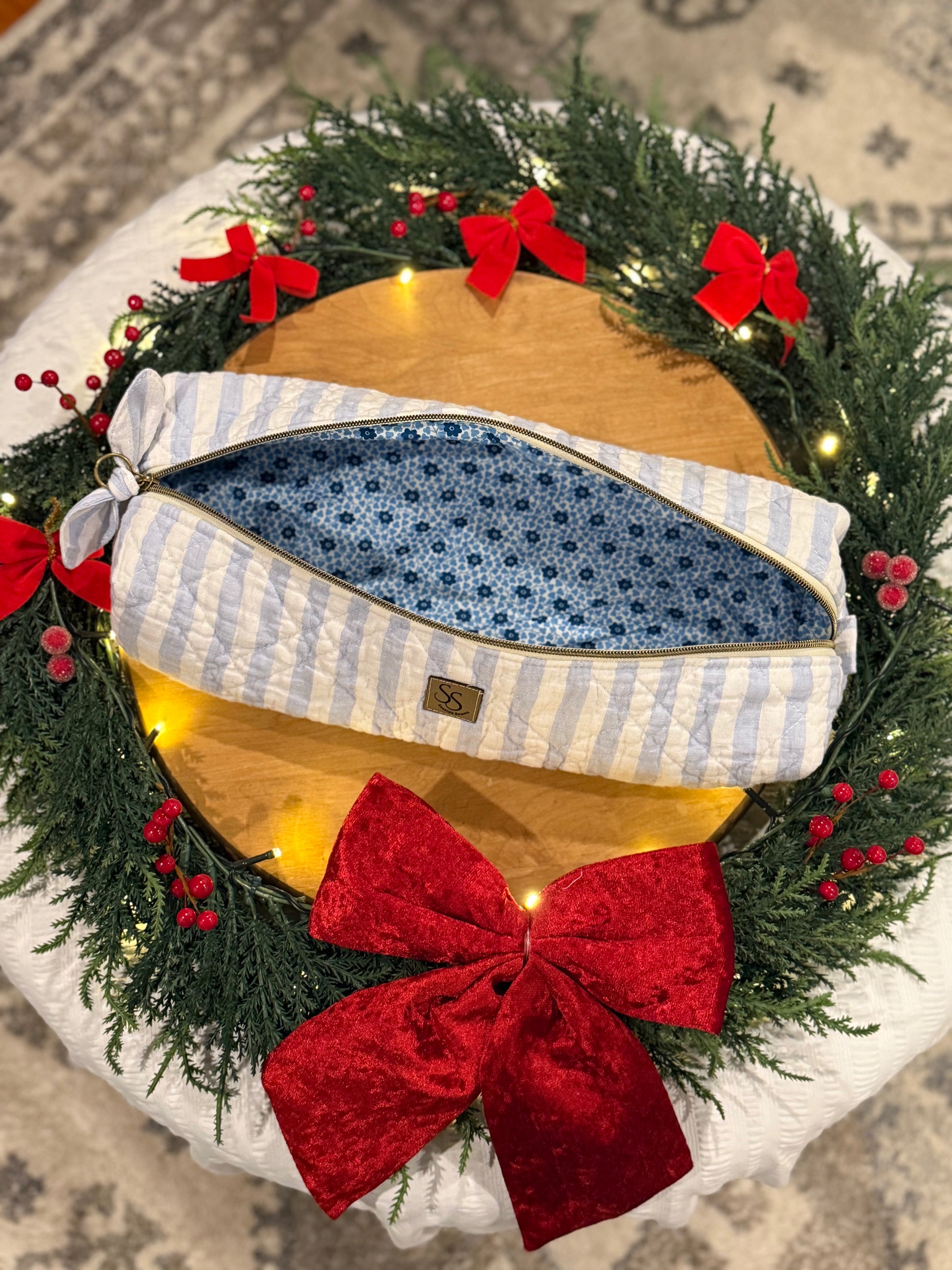Hair Tools Trove - BLUE FLORAL INTERIOR (VERTICAL STRIPES)